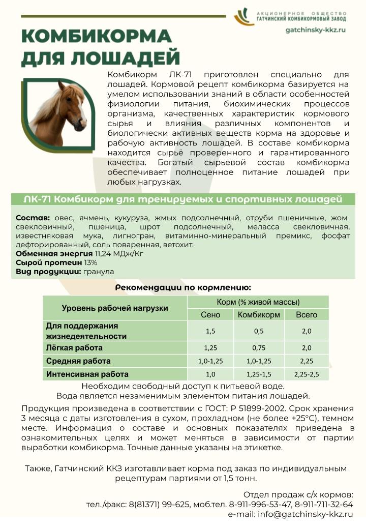 ЛК 71 комбикорм для лошадей